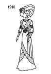 Gorsety znikają; sylwetka w kształcie litery S sprzyja tunice; luźne u dołu spódnice; kloszowe sukienki, raperia; nowe włókno - rayon (sztuczny jedwab) - wykorzystywane do strojów sportowych Style emancypantek; proste cięcia i praktyczne sukienki; męskie garnitury coraz prostsze. |