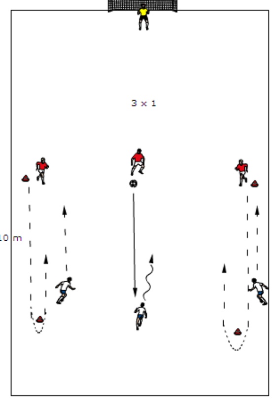 bramkarzy. Dwie grupy ćwiczą na przemian rozegranie ataku, a