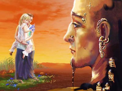 "Sadhann," he said, still smiling, the light of his smile reaching gray-blue eyes the color of water never contaminated by dust. "Sadhann, we have come to bestow a wonderful revelation upon you. Five years ago you bore a child. And lo, that child will become the God of War. Give thanks!"