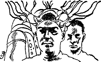 Yellow flames coiled through the thick air. Yellow serpents. They coiled, glowing, about his ankles. Then through the murk, two-headed and towering, approached his Adversary.