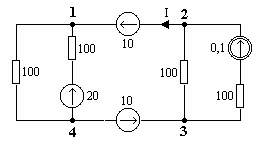 Wartosc pradu I obliczymy 3 sposobami: a) zastepujac galezie równolegle równowaznymi, b) wg równan potencjalów wezlowych (przypadek szczególny), c) zmodyfikowanym obwodem, w którym latwo ulozyc równanie potencjalów wezlowych.