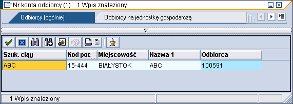 Każdemu klientowi (bez względu na rodzaj osobowości prawnej tzn.: osoba fizyczna, osoba prawna) zostanie przypisany kolejny numer kontrahenta w ramach zakresu numerów danej grupy kont, bez powtarzania i dublowania danych. Jednakże w celu uniknięcia podwójnego tworzenia kontrahentów należy przed każdorazowym wprowadzaniem sprawdzić, czy klient nie istnieje już w systemie SAP, wybierając wyszukiwanie po nazwie (szukany ciąg znaków) i kodzie pocztowym.