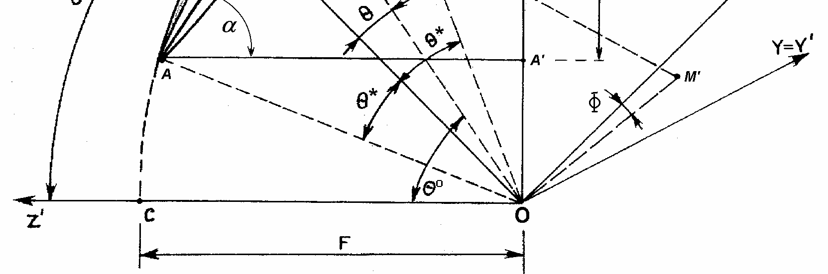 Na rys. 1. przedstawiono zarys paraboli wyjściowej oraz wybrany fragment stanowiący reflektor w dwóch parach układów współrzędnych: (X', Y', Z') i związany z nim sferyczny układ współrzędnych (ρ’, Θ’, Φ’). Druga para układów współrzędnych powstaje przez obrót dookoła osi OY' o kąt Θo pierwszej pary układów współrzędnych.