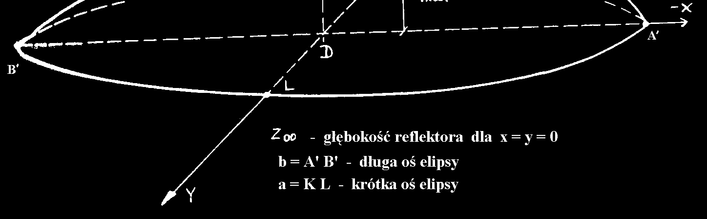 Wszystkie powyŜsze wielkości geometryczne wyznaczono w funkcji trzech podstawowych parametrów reflektora: