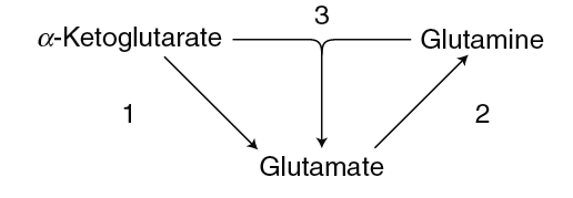 4 into glutamate and glutamine using glutamate dehydrogenase