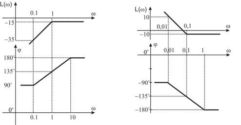 (1) Narysuj logarytmiczne charakterystyki (asymptotyczne): amplitudową L(ω) i fazową φ(ω) dla podanych transmitancji operatorowych. Skorzystać z (A).