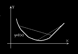 Funkcja f ( x) jest ściśle wypukła w dół na przedziale I ⊂ D , jeżeli każdy odcinek łączący f