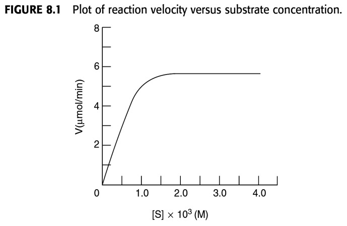 (b) At sufficiently high concentrations of substrate, the catalytic sites of the enzyme become filled and the reaction rate reaches a maximum.