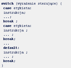 instrukcji. Instrukcja switch moŜe być stosowana tylko do testowania stałych wyraŜeń