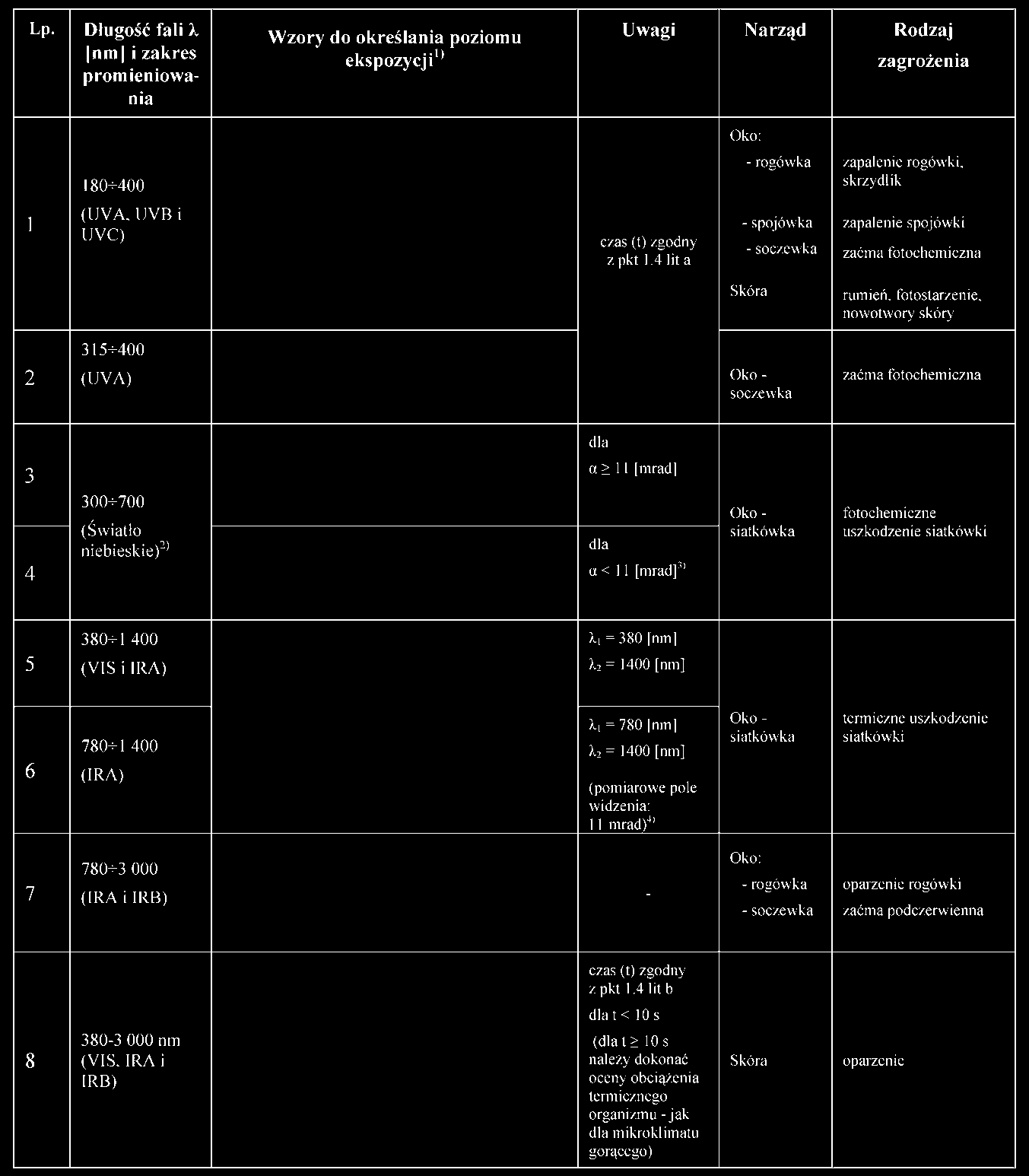 w sprawie bezpieczeństwa i higieny pracy przy pracach związanych z ekspozycją na promieniowanie optyczne2)