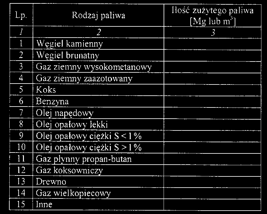Tabela D. Procesy spalania paliw w instalacjach, dla których wielkoÊci emisji podano w Tabeli A