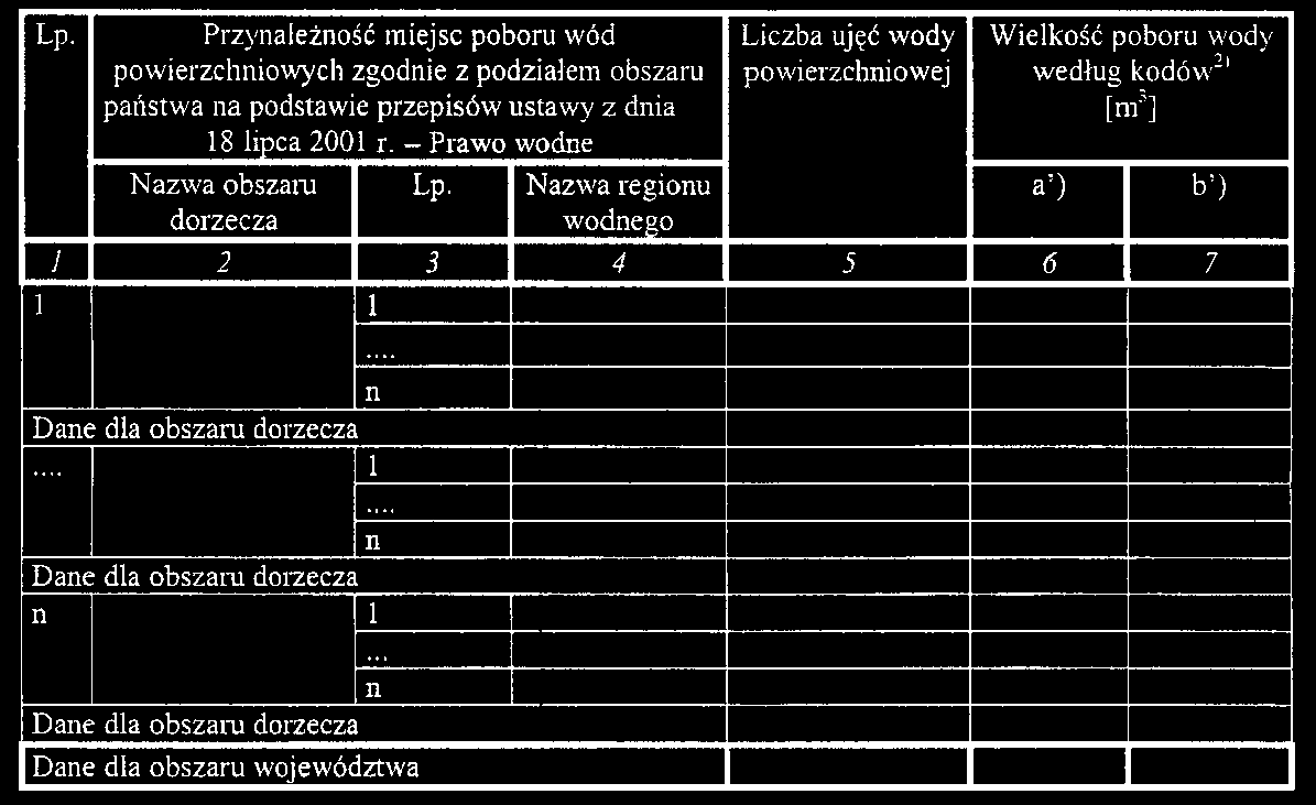 2) Kody odpowiadajàce celom przeznaczenia pobranej wody powierzchniowej: a‘) na zaopatrzenie ludnoÊci w wod´ przeznaczonà do spo˝ycia lub na cele socjalno-bytowe, b‘) na cele inne.