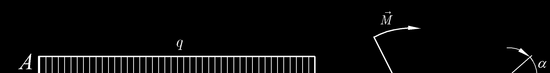 d) Dane: q = 3, 5 kN/m, F=2 kN, M=4 kNm, α=30 ,