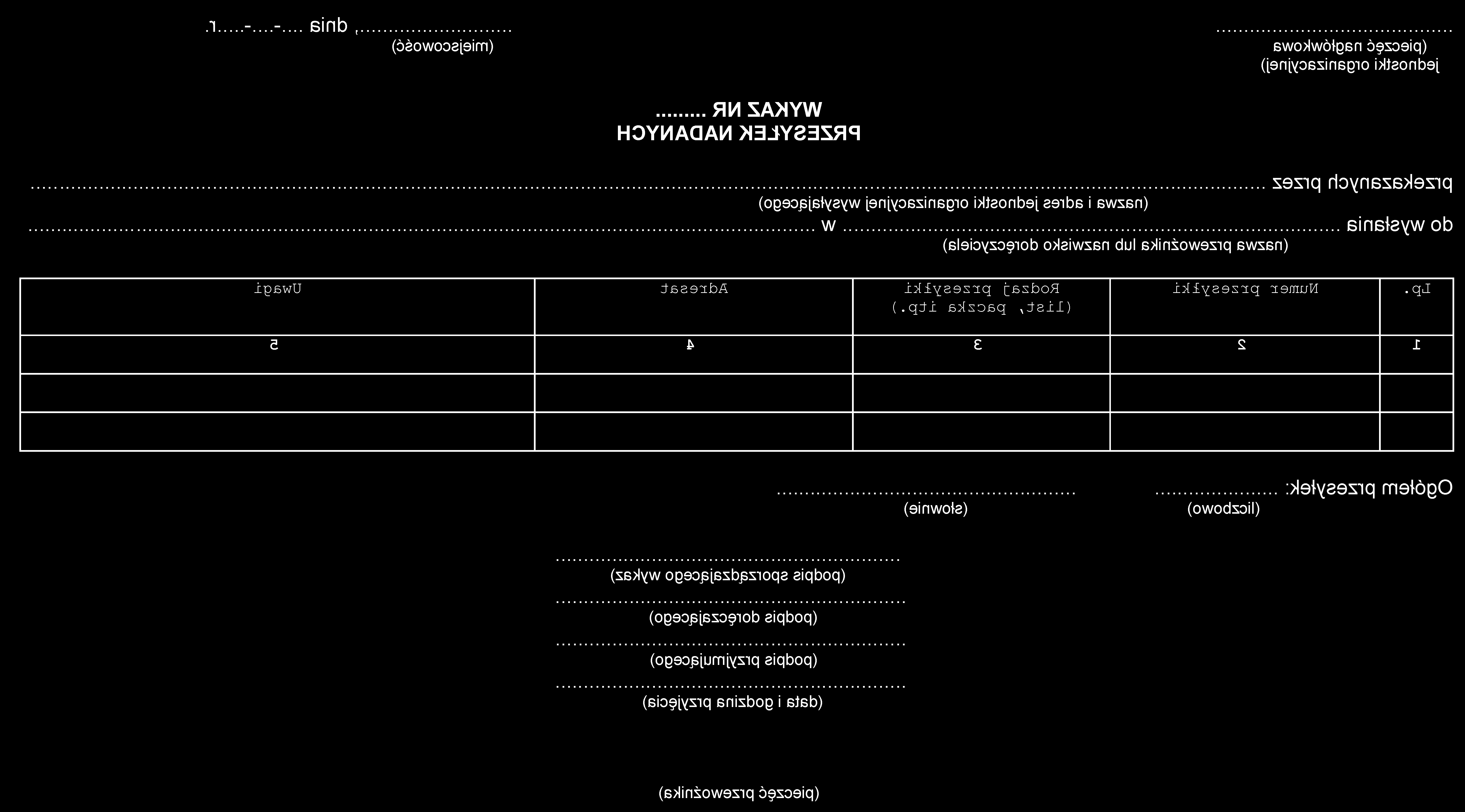 4) wykaz przesyłek nadanych, którego wzór stanowi załącznik nr 5 do rozporządzenia;
