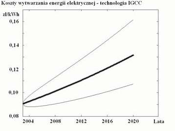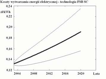 Przedstawiono jedynie przyk³adowe symulacje i prognozy kosztów wytwarzania energii elektrycznej. Ich wyniki œciœle zale¿¹ od przyjêtych estymatorów parametrów modeli.