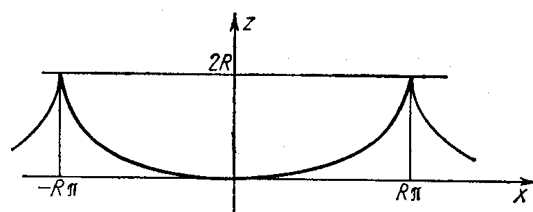 równanie parametryczne : x = R (t − sin t), z = R (t − cos t); równanie ogólne : x = R arccos (R - z) / R − z (2R − z).