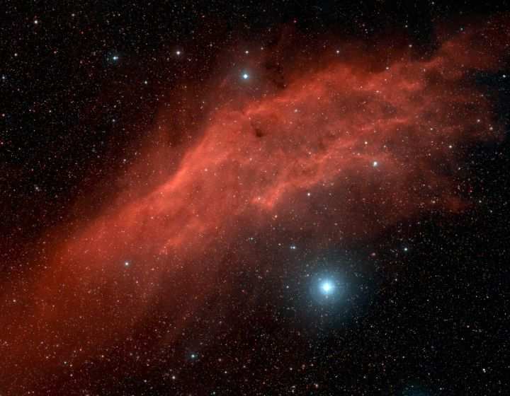 Mgławica Kalifornia. Rozmiar obrazu: 2.9°x2.3°. Zdjęcie DSS. © CalTech/Palomar Mgławice powiązane z mgławicą Kalifornia