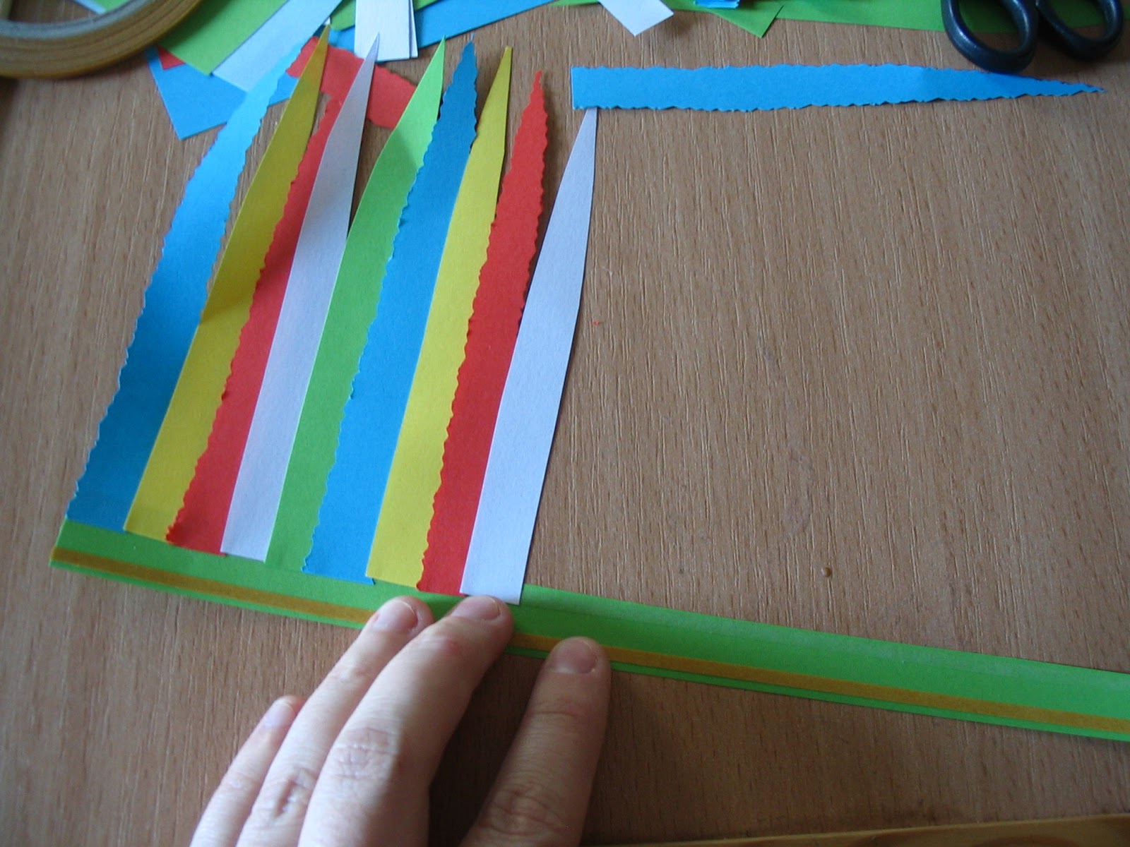 3. Paski papieru przyklejcie na jeden dłuższy pasek...