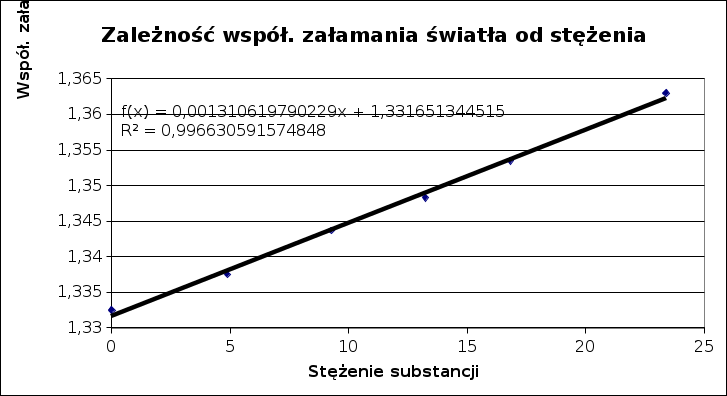 Nr | Współ. załamania światła [N] | N | stężęnie | ||||||