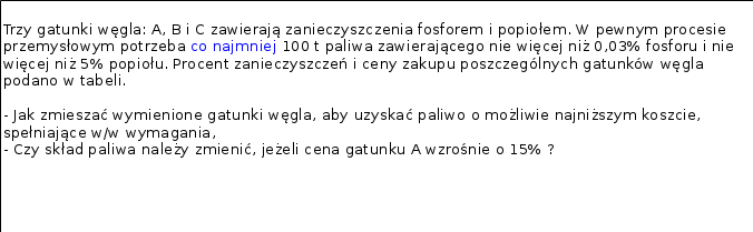 def. ZD: | Xi - | masa węgla A, B, C w mieszaninie [ t ] |