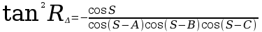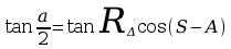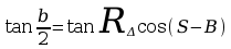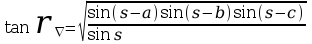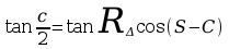 cos c/2 | 0,610490807381435 | 0,350438457418418 | (sin a/2*sin b/2) / cos c/2 | ||||||||||
