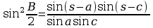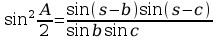 sin^2 A/2 | 0,06038266454633 | sin^2 B/2 | 0,045853250 | sin^2 C/2 | 0,924671308339434 | ||||||||