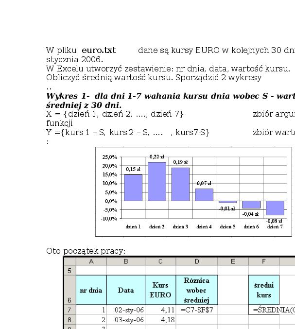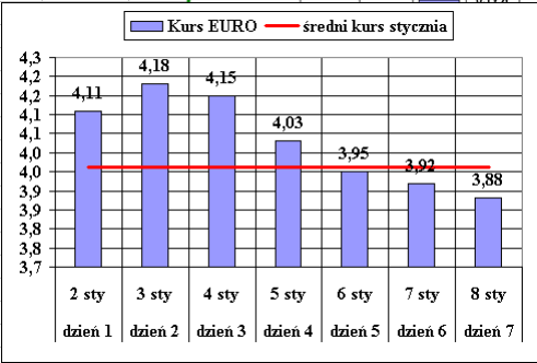 nr dnia | Data | Kurs EURO | Róznica wobec średniej | średni kurs stycznia | ||||||||||||