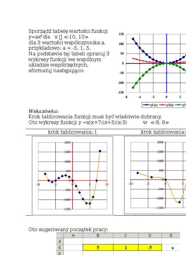 Tabela i wykres funkcji y = f(x) | Adresowanie względne, bezwzględne | ||||||||||||