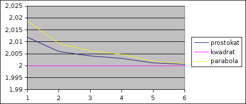 liczba wezlow | prostokat | trapez | parabola | liczba wezlow | prostokat | trapez | parabola | ||||||