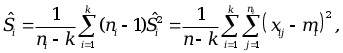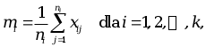 niezależnie próby o liczebności ni elementów. Wyniki prób oznaczone są przez xij (i = 1, 2, …, k, | ||||||||