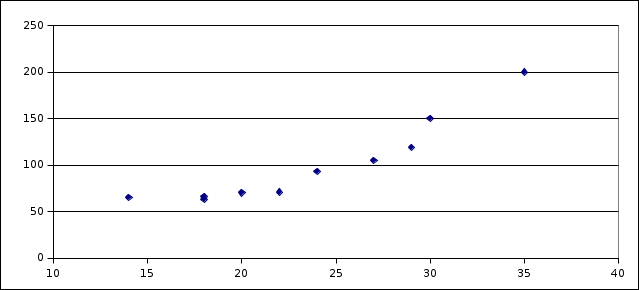 Należy sporządzić wykres punktowy. | |||||||||||||||||||