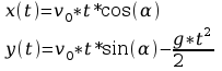 a - | kąt (w stopniach) pomiędzy kierunkiem prędkości początkowej a dodatnim zwrotem osi X | ||||||||