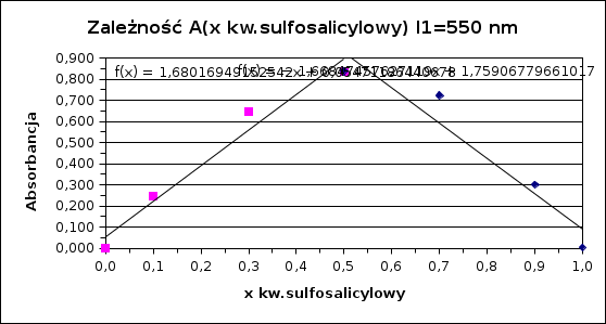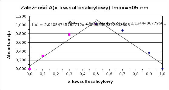 r-ór | Fe w HClO4 | Kw sulfosalicylowy w HClO4 | HClO4 | L max=505 nm | L1 =550nm | L2=460nm | V kw.sulf/V Fe | ||||