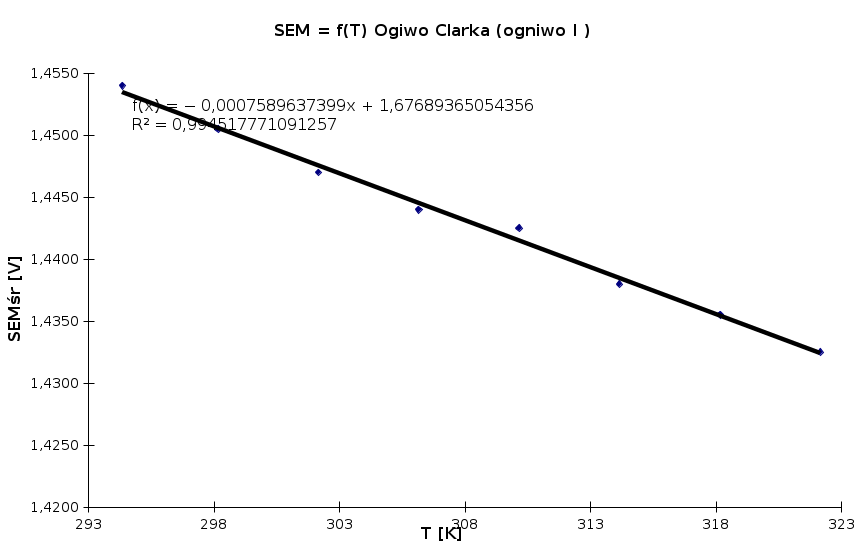 [C/mol] | [K] | y=-0,0008x+1,6769 | Ogniwo Clarka | ||||