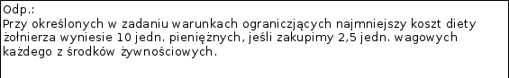 Składnik środków żywnościowych | Zawartość składnika w jedn. wagowej środków żywnościowych | LSW | Minimalna ilość składnika, [ jedn. ] | relacje | ||