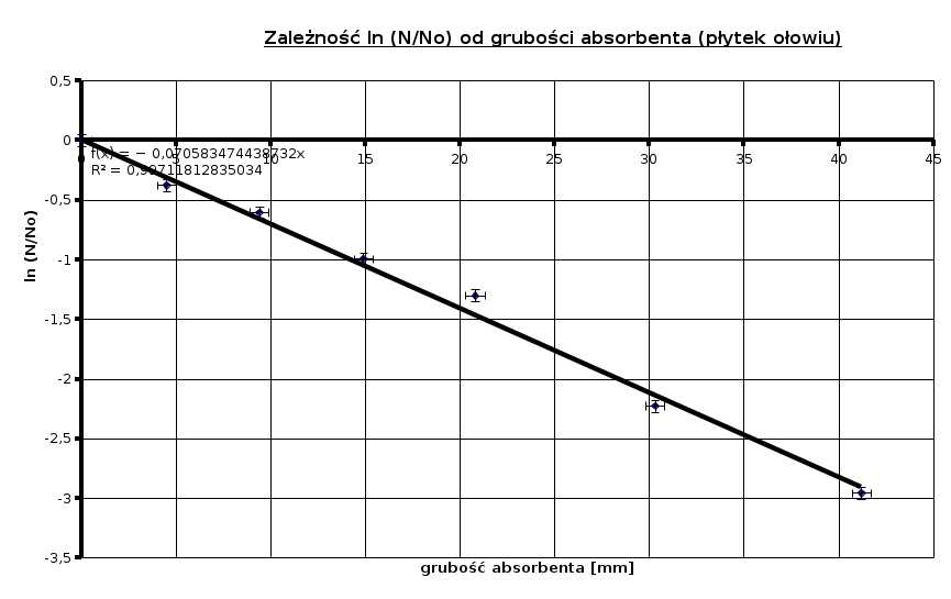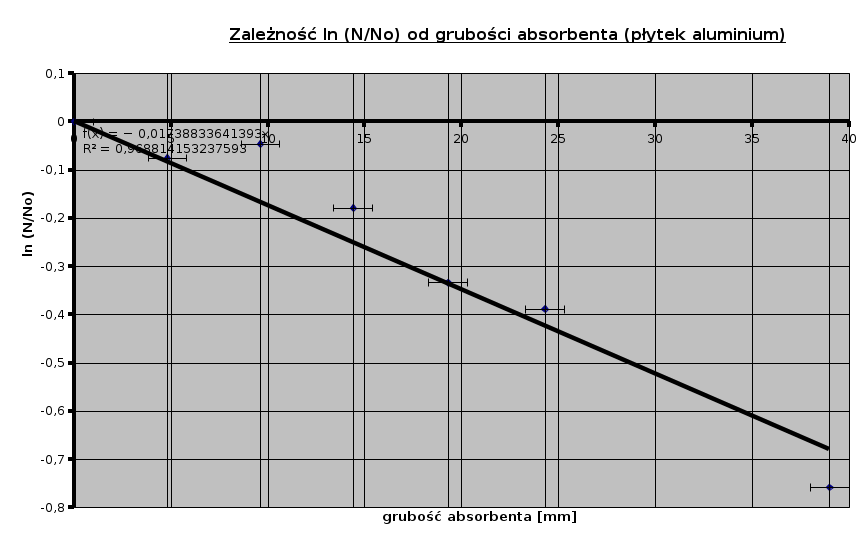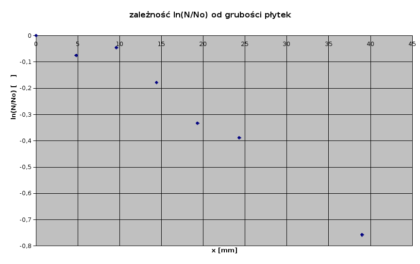 1 pomiar | 2 pomiar | średnia pomiarów | średnia - tło | N/No | ln (N/No) | - tło | N/No | ln (N/No) | ||||||