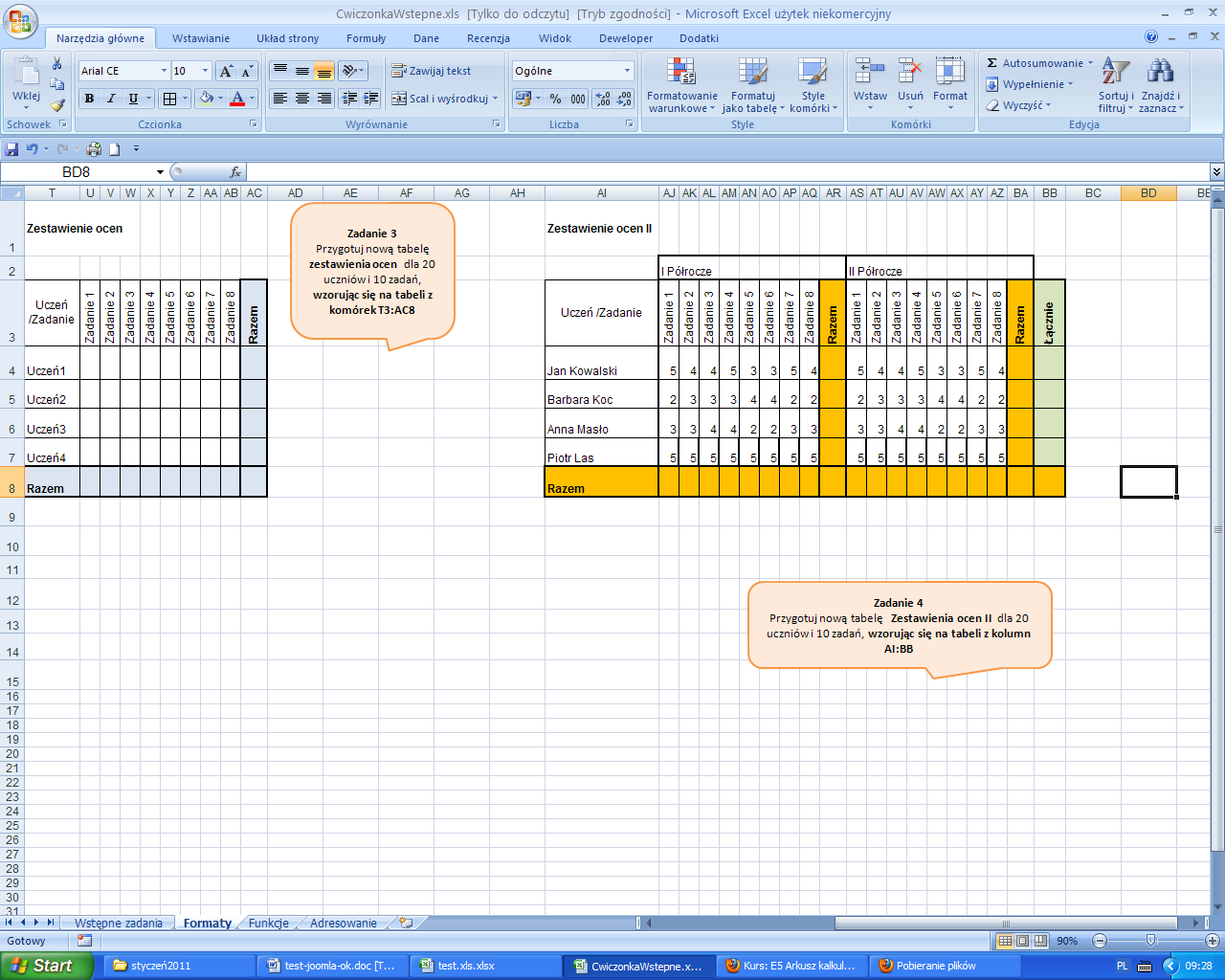 E5 Arkusz kalkulacyjny w pracy wychowawcy i nauczyciela (kurs podstawowy) | ||||||||||||||||