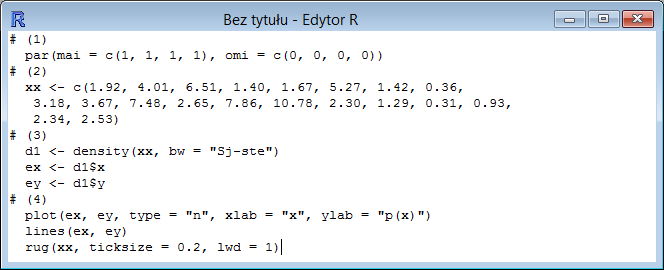 #3 Funkcja destiny oblicza oszacowaną gęstość jądra. Do ex i ey przypisywane są odpowiednio: argumenty i wartości funkcji gęstości.