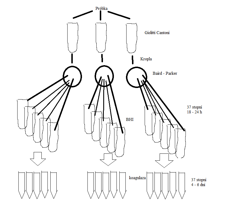 niezależnie od tego czy się stwierdza zaczernienie pożywki, czy czarny osad, należy wykonać przesiew na Baird - Parkera