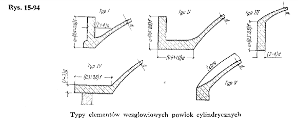 ELEMENTY PACHWINOWE (wieńczące) mają podobne kształty jak w powłokach cylindrycznych; przykłady: