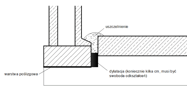 Dno zbiornika jest oddylatowane, co umożliwia swobodne odkształcenia ścian. W związku z tym styk ścian z dnem nie generuje zaburzeń.