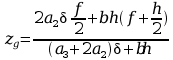 Dla przekroju trapezowego z belkami wezgłowiowymi (przedstawiony powyżej) położenie środka ciężkości: