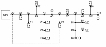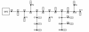 a ) Schematy jedno kreskowe rozmieszczenia poszczególnych zakładów przemysłowych wraz z ich połączeniami z głównym punktem zasilającym :