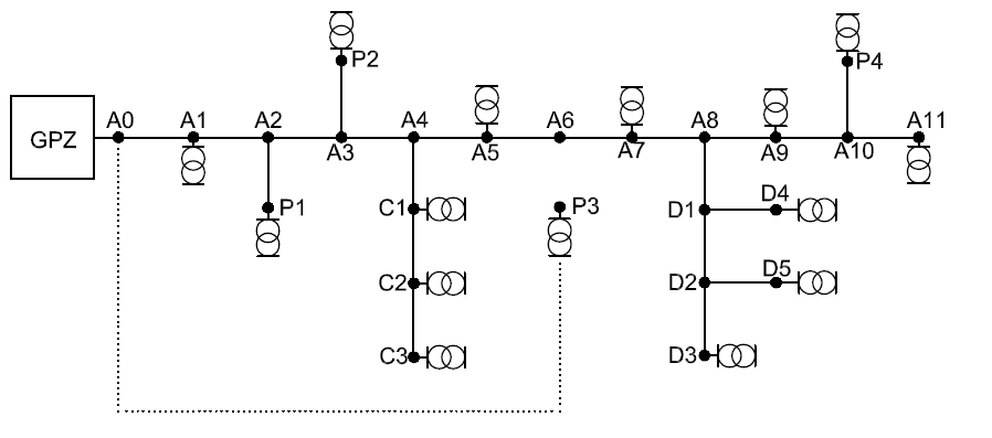 b ) Dobrać przekroje przewodów do zakładów przemysłowych P1 , P2 , P3 oraz P4 ( dla wariantu 1 oraz 2 ) .