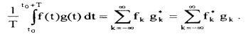 Jeżeli f(t)i g(t) są funkcjami okresowymi o tym samym okresie T spełniającymi warunki Dirichleta , to zachodzi zależność :