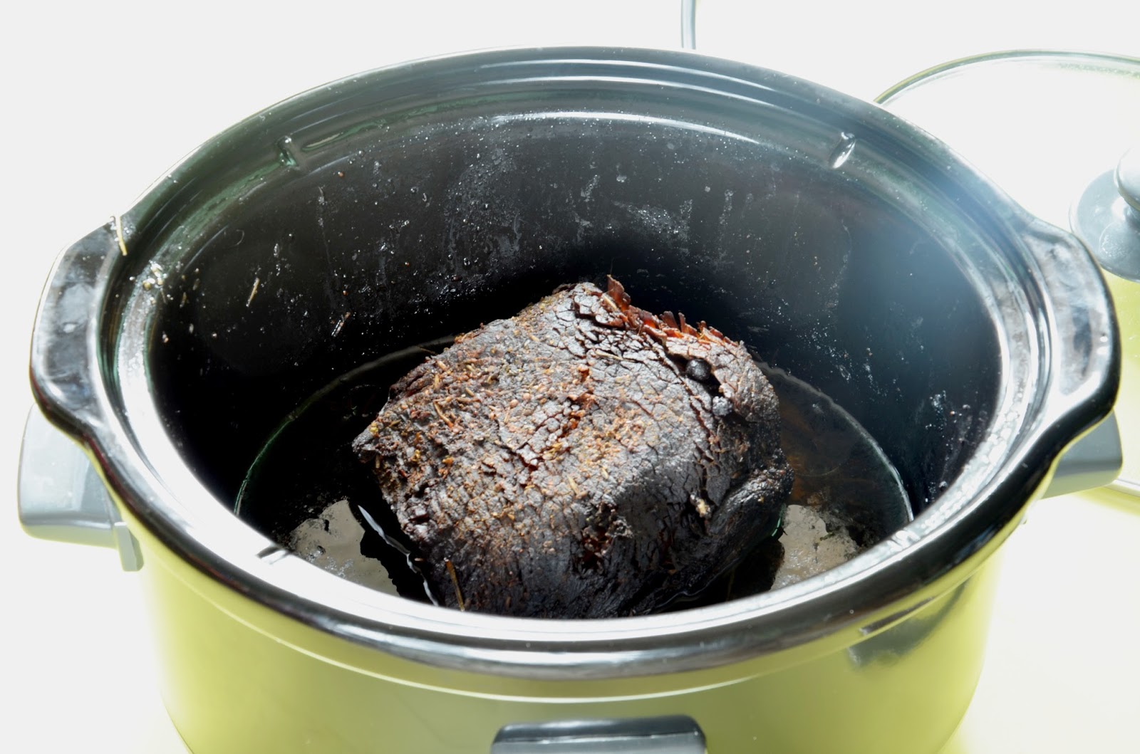 Na dno wolnowara wkładamy smalec na nią kładziemy mięso wołowe, na wierzch kładziemy liście laurowe, świeży rozmaryn, ziele angielskie, jałowiec, dusić około 8 godzin w niskiej temperaturze. Pod koniec można przełożyć misę wolnowara do piekarnika nagrzanego na 200 do zarumienienia Po ugotowaniu mięso było mięciutkie, delikatne w smaku rozpływające się w ustach, ale to zasługa gotowania, duszenia w niskiej temperaturze.