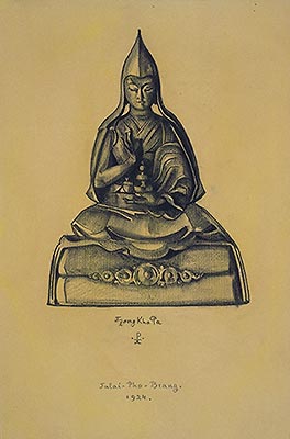Dwa lata później, w trzecim miesiącu roku koguta (1417) w Ganden zebrali się malarze i rzeźbiarze w celu odlania posągu Buddy Siakjamuniego. Miała być odrobinę większy od tego w Dżokhangu. Artystom zlecono wykonanie mandali z pozłacanej miedzi, związanych z trzydziestoma dwiema praktykami bóstwa Gujasamadży, sześćdziesiącioma dwiema praktykami Heruki i trzynastoma Jamantaki.