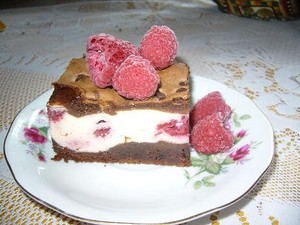 Sernikobrownies z malinami
