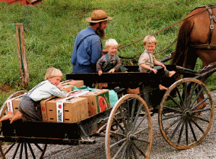 Amish do not drive cars. Instead, they travel in buggies pulled by
