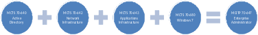 Exam 70-647: PRO: Windows Server 2008, Enterprise Administrator MCTS prerequisites: Exam 70-640: TS: Windows Server 2008 Active Directory, Configuring and Exam 70-642: TS: Windows Server 2008 Network Infrastructure, Configuring and Exam 70-643: TS: Windows Server 2008 Applications Infrastructure, Configuring and either Exam 70-680: TS: Windows 7, Configuring or Exam 70-620: TS: Configuring Windows Vista Client or Exam 70-6242: TS: Deploying and Maintaining Windows Vista Client and 2007 Microsoft Office System Desktops |
